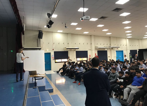 Dr. Kirin Fiona Hilliar, Psychologist at Lifeworks, addressed a gathering of 8-10th grade high school students at Al Khaleej National School and spoke on the Importance of Well-Being.